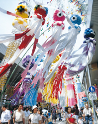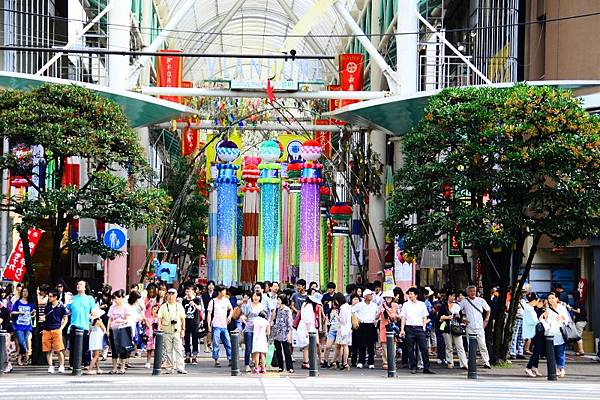 ▲每到七夕中央大街的名掛丁商店街都會裝飾著彩色流蘇,成為祭典中的一大特色。