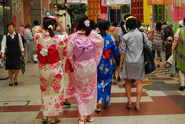 ▲街上隨處可見穿著浴衣來逛街的人群。