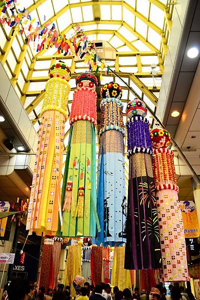 今年的仙台七夕祭於8/6~8/8舉行,祭典當天商店街各店家就會準備好超大流蘇吊飾,祈求今年生意興隆。可別小看這些吊飾唷!一條吊飾竟然要價數十萬~數百萬日幣呢!當然啦~店家之所以如此大手筆,也是為了競爭年度七夕吊飾最佳大賞,若是得獎的話還可以順便幫商店宣傳一下呢!