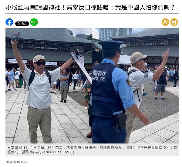 小粉紅再鬧靖國神社!高舉反日標語嗆:我是中國人怕你們嗎? - 國際 - 自由時報電子報