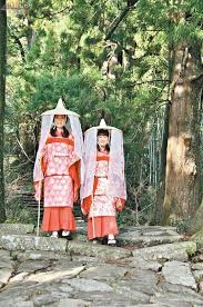 已婚的女性和未婚少女所穿著的“長袴”顏色是不一樣的,未婚少女的“長袴”顏色比較深,一般為"芳紅";已婚的女性穿著的“長袴”顏色鮮亮,一般為緋紅,所以也被稱為“緋之袴”。