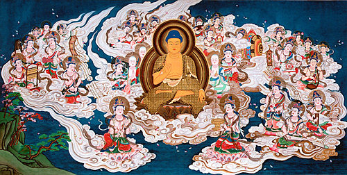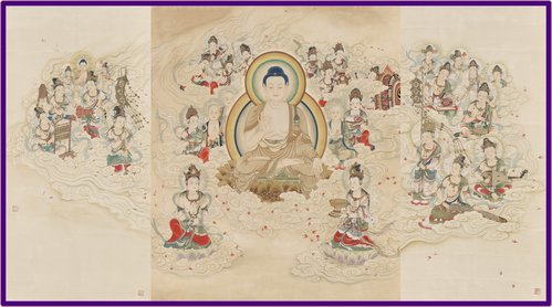 阿彌陀佛聖眾來迎圖 工筆絹畫 (臨古)
