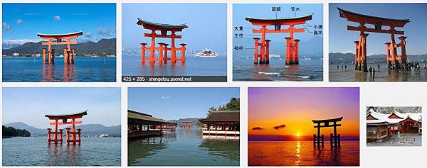 在之後的歲月中,神社殿堂屢次遭遇火災,留存至今的主要神殿均為鎌倉時代、室町時代和江戶時代重建的。儘管如此,神社還是基本保留了當年清盛修建時的風貌。堪稱嚴島神社之象徵的「大鳥居(類似牌坊的建築——譯註)」現已是第八代,建於明治時期。