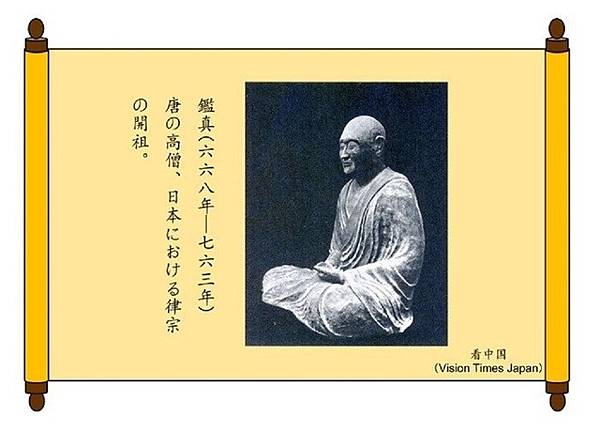 那時候,鑑真和尚帶了四百多人東渡到日本,這當中有農業家、藝術家、建築家……,因此現今日本的建築、服裝、文字、繪畫、醫藥等,無不深受當時唐朝的影響,所以鑑真和尚被尊為日本文化之父。