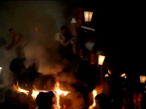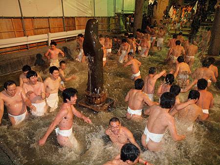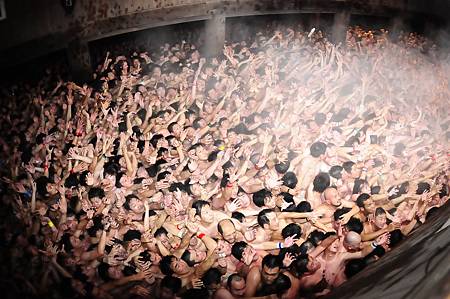 這個《蘇民祭》是以日本的岩手縣為中心所舉辦,而且還是在每年最寒冷的1~3月。參加的人除了會在河川中把水倒在自己身上淨身外,還會站在井字型的木轎上,當然都是只穿著裸體的囉!是不是很瘋狂呢?但當中最有名的其實是他們會把可以「除去惡運」的護身符放在一個麻袋裡,然後大家瘋狂搶奪的「蘇民袋爭奪戰」,當然!他們依舊是裸體!整個就是看到的人都覺得冷吧!