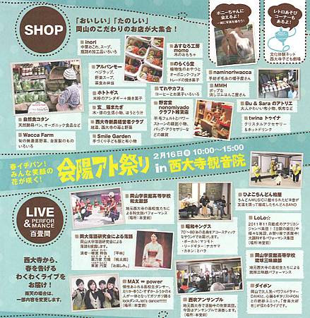 有一連串的live表演以及許多岡山當地店家前來擺攤