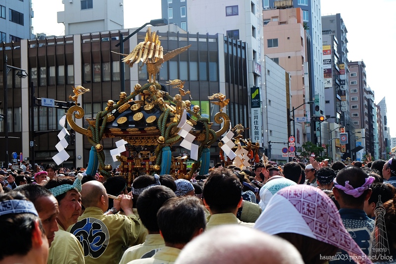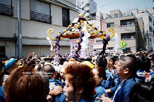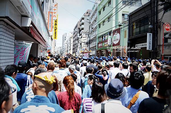 每年五月的第三个周末(星期五、星期六、星期日),人们穿着江户时代的服饰,从黎明开始就扛着三座宫用神舆和八十座町内用神舆巡绕浅草四十四町。