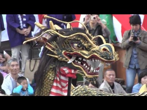 市内外から訪れた多くの人が見守る中、あでやかな着物で舞う「本踊(ほんおどり)」や長さ6メートル、重さ3トンの船を豪快に回す「川船」などが奉納された。中でも人気は「龍踊(じゃおどり)」。全長約20メートルの青龍と白龍が金色の玉を追って宙を舞い、拍手が湧いた。