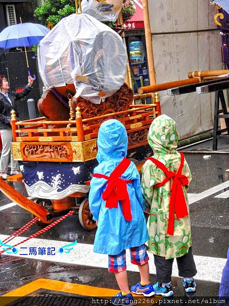 (即使下著雨也不失祭典的熱情,仍很多人參興)