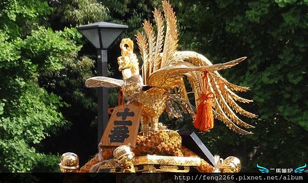 每座神轎上會有一座金鳳凰,據說一座鳳凰神轎重達3噸,一列需動員80人以二根長達8公尺的轅木抬著神轎,抬轎者不分男女,大約5分鐘就要換陣,所以一個隊伍動軋百人,整個神轎隊伍不分老少異口同聲呼喝著,魄力十足往神田神社邁進。