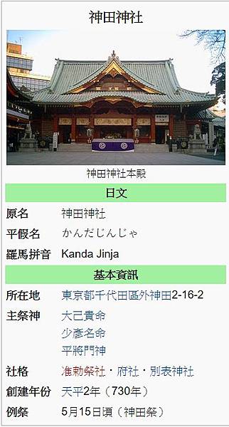 神田祭是日本三大節慶活動之一.江戶時代(1603〜1867年)/「神田祭」與山王祭(日枝神社)和深川祭(富岡八幡宮)並稱為江戶三大祭祀活動,可以說是家喻戶曉。同時,還與京都祗園祭(八阪神社)和大阪天神祭(大阪天滿宮)並居,是日本三大祭祀活動之一。 @ 姜朝鳳宗族 :: 痞客邦 PIXNET :: - http://goo.gl/2zSkoN