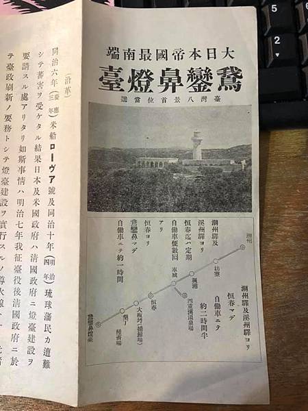 明信片上有說明文字「位於臺灣最南端的恆春,燈臺的光線可以照射到20浬遠,也是高松宮殿下曾御駕至此的光榮之地」。