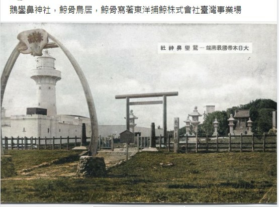 鵝鸞鼻神社創建於昭和4年(1929),神社前的鳥居為鯨魚顎骨,立於昭和5年(1930),光復後已將神社拆除。