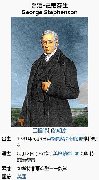 斯蒂芬森 1781年7月9日生於紐卡斯爾附近的維拉姆,1848年8月12日在切斯特菲爾德去世。