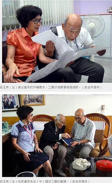 小川真壽美(左)檢視家族日治時期的戶籍資料。(記者蘇福男攝)