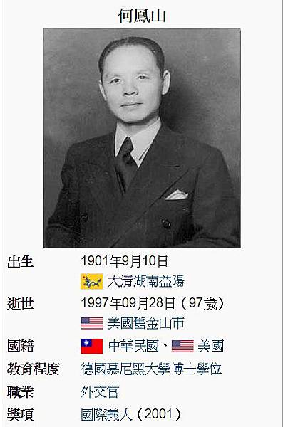 方辛德勒」美譽的中華民國已故大使何鳳山,由何鳳山
