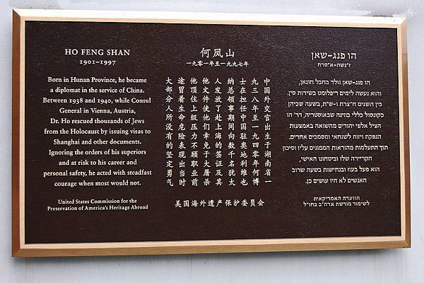 2001年,以色列政府在耶路撒冷為何鳳山建立紀念碑,碑上刻著「永遠不能忘記的中國人」。