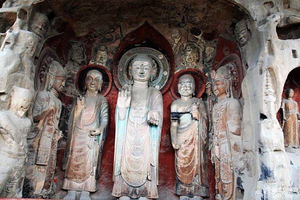 中央是阿彌陀佛,兩側是阿儺伽葉,觀世音菩薩和大勢至菩薩