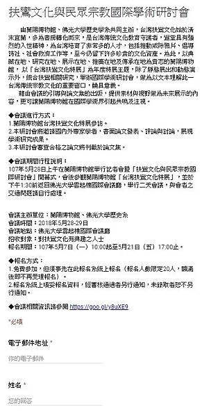 扶鸞文化與民眾宗教國際學術研討會線上報名網址https://goo.gl/WqZG7Y