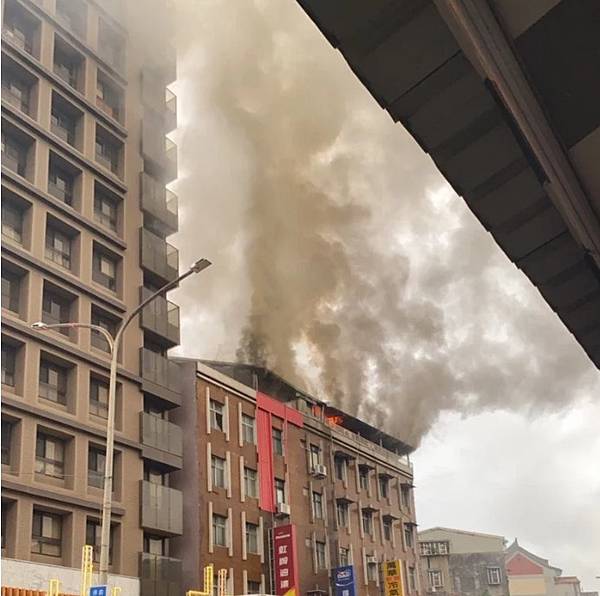艋舺青山王遶境原定12月4至5日夜訪、昨天正日遶境,遶境隊伍尾端至今天上午7時才剛行經環河南路沿線,距終點青山宮仍有最後一哩路,卻在經過一處紅壇時,一陣鞭炮聲過後,壇後一棟7層樓建築物頂樓突然冒出黑煙。