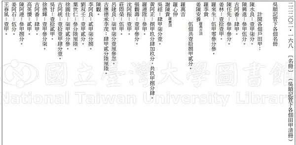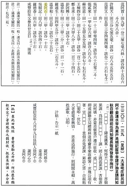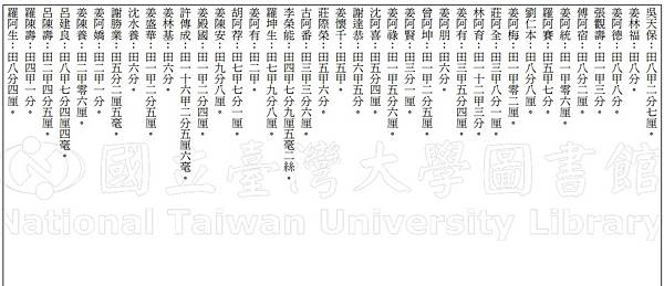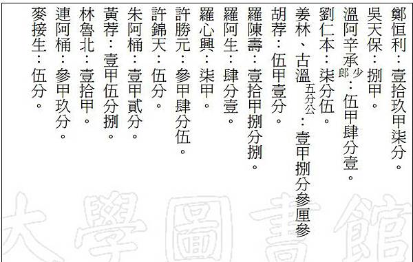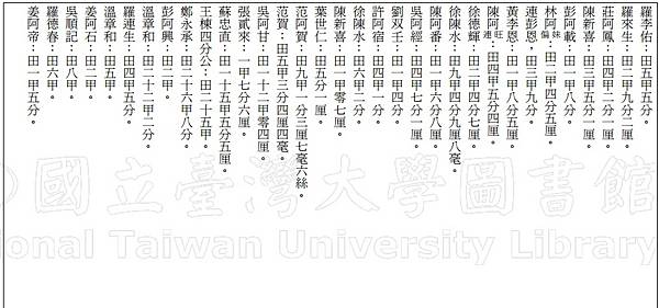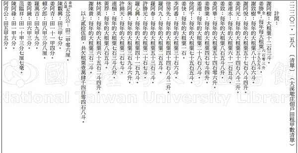 內容摘要 大溪墘庄佃戶田租甲數清單