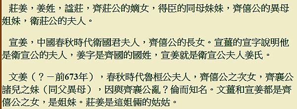 姜姓三大美女,姜姓齊國,姜子牙後人。莊姜、文姜、宣姜/春秋四大美人”(息媯、齊文姜、夏姬、西施)/《詩經》中說文姜、宣姜:“顏如舜華”。尤其是齊文姜,生得如花似玉,桃腮杏臉,蛾眉鳳眼,走起路來體若春柳,步出蓮花 @ 姜朝鳳宗族 :: 痞客邦 PIXNET :: - http://goo.gl/406aHX