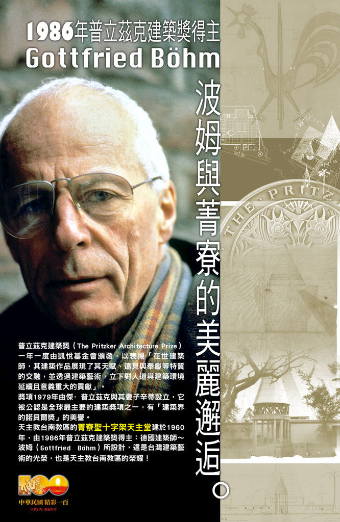 普立茲獎得主-佛萊德.波姆(Gottfried Bohm)設計的天主堂,偷偷藏在台南市後壁區。菁寮天主堂在1966年興建,時值戰後,日本建築師都離開了,而台灣本土建築師才開始培養,來台傳教的傳教士找不到建築設計師,只好請國外的教會幫忙,讓國外設計師將草圖畫好,再找本地工匠按圖施工,Bohm就是這樣完成了他第一件的海外作品。雖然現在的菁寮天主堂老舊了,但在當時可是全庄的明星,與當地田野風光結合成饒富趣味的一景。