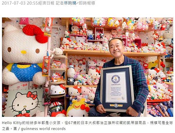 日本三麗鷗旗下的知名卡通人物凱蒂貓(Hello Kitty)普遍受到小女孩的歡迎,如今日本有位67歲大叔所收藏的凱蒂貓商品規模已達全球之最,可能更讓小女孩嫉妒不已。