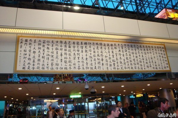 張貼在桃園機場第二航廈出境大廳的「桃園機場賦」,被作家張大春批評為「不像樣的東西」,(http://udn.com/news/story/1/1342402