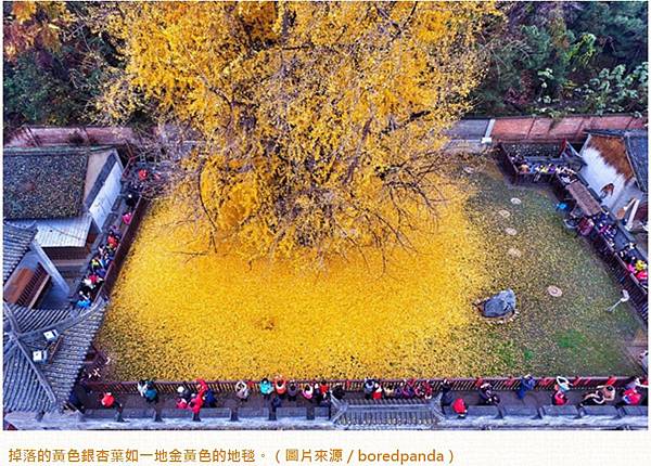 千年古銀杏呈現金黃模樣。(圖片來源/boredpanda)