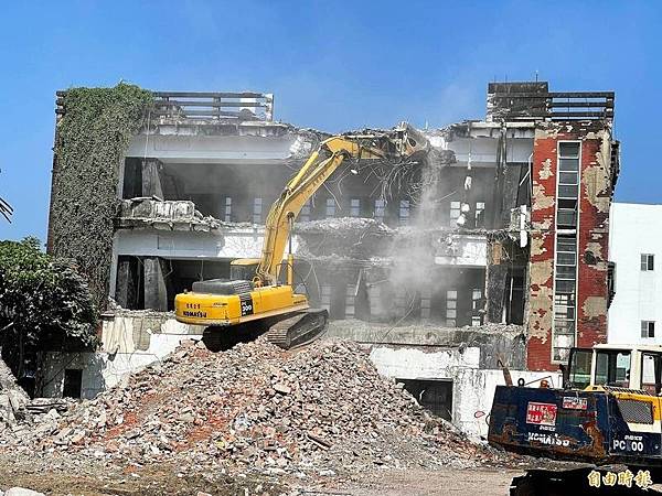 香蕉大王吳振瑞創建的青果合作社旗山第一辦事處去年底售出後,主體建築今已被動工拆除。(記者許麗娟攝)