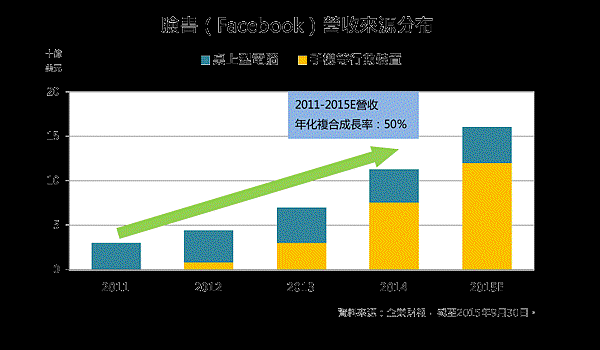 2012年臉書上市時以38元美金承銷,市場覺得這個價格簡直高到瘋狂。臉書股價在半年內腰斬跌至19元美金,沒人相信這個大家用來貼貼照片、聊聊瑣事的網站,會有能力賺錢。2015年11月,臉書股價創下110元美金歷史高點,三年內股價從最低點開始暴衝成長5.8倍。同時,2015年底,臉書市值突破3千億美金,躍身為美國前十大企業之一。