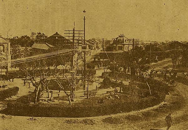 台灣 日本時代嘉義市街的老照片(今嘉義中央噴水池),裡面還有輛灑水車呢!!
