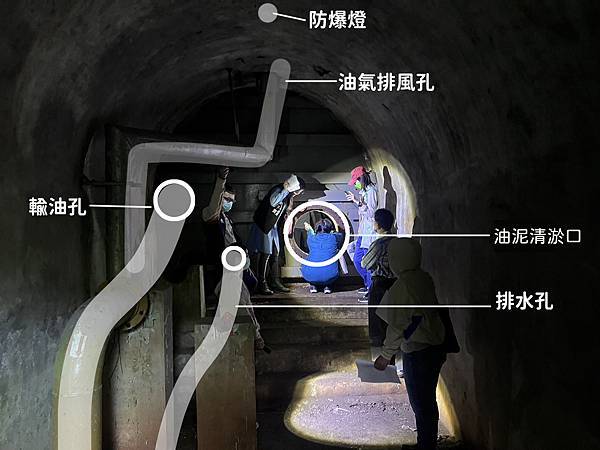 可見這四座地上掩體充滿綠意,地下有著獨特工業遺址空間感的油庫,雖然是在1968年由國防部的虹橋計畫所建,其仍在六燃的整體脈絡。由於資料尚未解密,無法確定該區域有多少日本時期遺構。