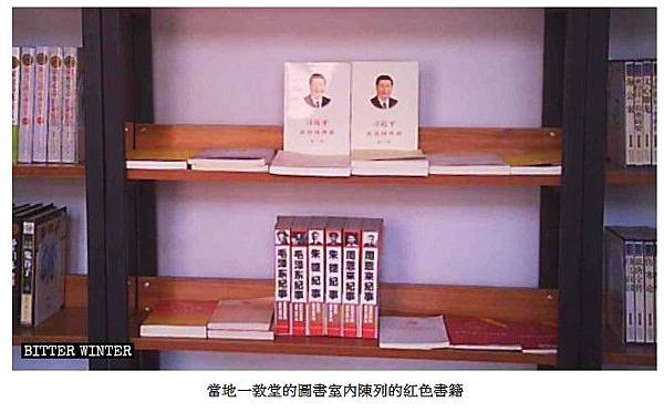 當地一教堂的圖書室內陳列的紅色書籍