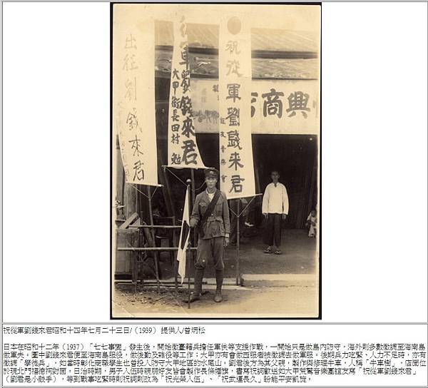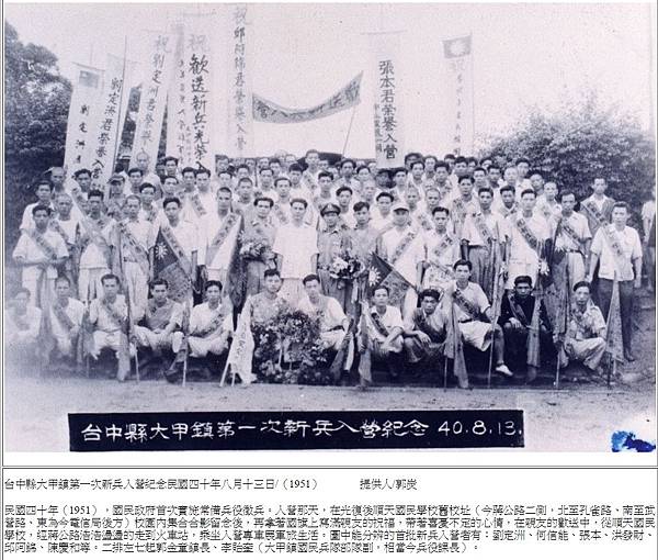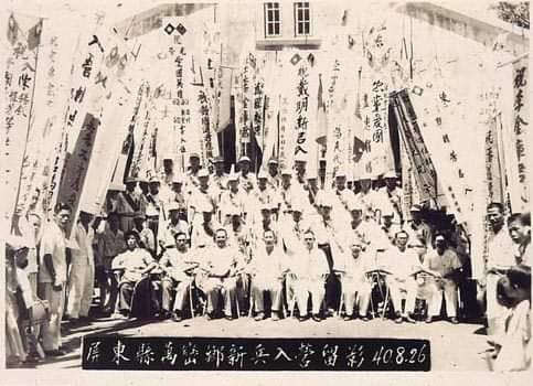 國府初期從軍相片1951年從軍親友祝賀長條旗仍有日本風,1954年從軍業務由地政事務所主辦