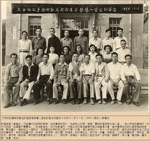 大甲鎮公所里戶籍員合影留念民國三十六年/(1947) 提供人/林惠津