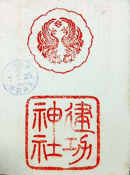 建功神社官印,台灣最吉祥的鳥鳳凰,及三角形 台 字樣