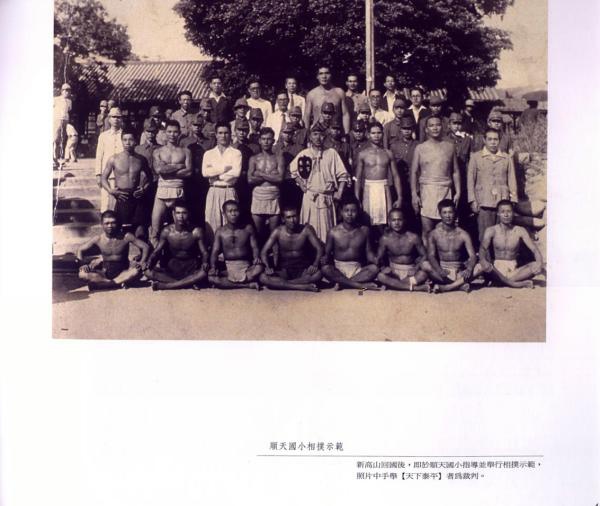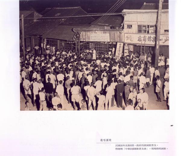 大甲國(日)語講習所創設於昭和六年(1931年)四月二十五日,場所為大甲公學校,所長由大甲公學校校長富田豐兼任,講師由柯清受與張水此二位老師擔任,共一組(班)人員四十名,修業年限二年,所教科目有修身、算術、唱歌體操及家事裁縫。後來在各部落普遍增設國語講習所,據曾在外水尾、下山腳二所國語講習所任教,現年八十四歲的柯素琴老師(王為森老師夫人)說,國語講習所上下午課(一至三時)的學生多數為未上公學校的失學女子,年紀參差不齊,二十幾歲也有;男子一般則在晚上上課,學生上課較無安全上的顧慮;但設在城內大甲公學校及大甲女子公學校的國語講習所,則因白天上課之故,不論男女皆在晚上上課。柯素琴老師說當年一個月薪水十五圓,每月初二還需回大甲東國民學校(改制前稱大甲公學校)針對教學過程所遇到的問題,由公學校老師指導做檢討改進。圖中大甲神社在整地時,奉仕作業(勞動服務)的大甲街國語講習所老師與大甲街長甲斐普勇(前排左六盤腿戴眼鏡)、大甲街役場助役郭金焜(後排左九光復後擔任鎮長)合影留念,遠方為鐵砧山。其餘老師前排右一莊嘉穀、右三起梁火木、王慶忠、王秋、右七林熊徵、左四黃金勇、左四指導員(日人),二排右二王桂花、右四起張香珠、柯春燕、柯素琴、王塗、吳淮水、朱萬春、巫賜、左一起劉丁朝、李炳章、曾登貴、王萬喜、左七起曾汝煉(教化指導員)、李貽堯。從老師臉上笑容看來,局勢應不算太緊張。據張金福先生說,大甲神社位置約在致用中學校內游泳池舊址,後來可能因戰況吃緊,經費無著沒蓋成。