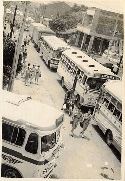 民國五、六十年代(1960-70)的大甲鎮,南來北往的道路,僅有市區的順天路及經過大甲火車站的中山路。因中山路為台一線省道,更為南北交通要道,車水馬龍,至為熱鬧。據說當時南北運輸夜以繼日,中山路、及順天路二旁的居民,夜夜被呼嘯而過的車聲,吵得難以好眠。圖為民國五十八年(1969)中山路街景,大甲中學剛放學,台灣客運及豐原客運正從學校載送學生回家的熱絡景象,路上還有清湯掛麵,戴著「童子軍帽」的女學生,三二成群,漫步踏上歸途。右上角「清安西藥房」為今薰風里長王清彥先生所經營,屋旁為雜貨店,雜貨店旁的榕樹下有一間土地公廟,位今鎮瀾街、中山路口,鎮瀾街約民國七十八年(1989)左右才開闢。