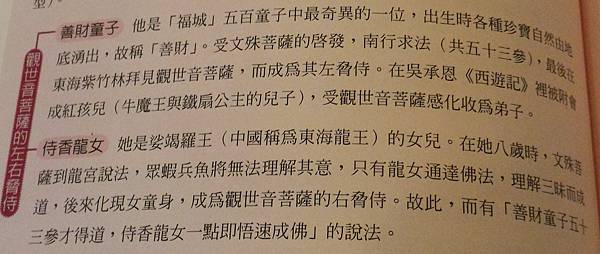 在觀音大士的塑像兩邊,有一對童男童女,男的叫"善財",女的叫"龍女"。