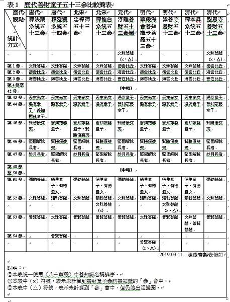 另外,善財童子參訪的對象裡,可以說不分尊卑、職業、性別、身分,不但有菩薩、國王、長者、比丘、比丘尼、在家男女信眾,也有外道、婆羅門,甚至企業家、開香鋪的老板、家庭主婦、藝術家、數學家、妓女、船師、青少年等。在這五十三位善知識當中,女性朋友就占了四分之一左右。