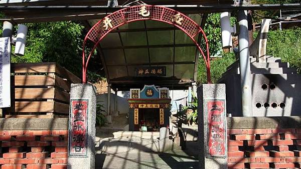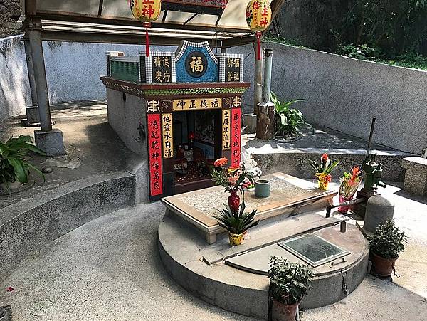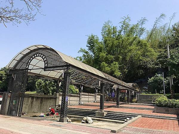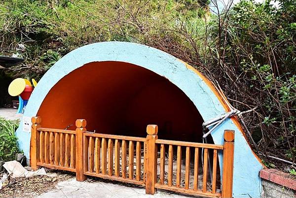 前方不遠處的一座涼亭,旁有一半圓拱形的防空壕。 圓拱內有一口水井,名為「龍目井」,是西班牙時代的歷史遺跡。