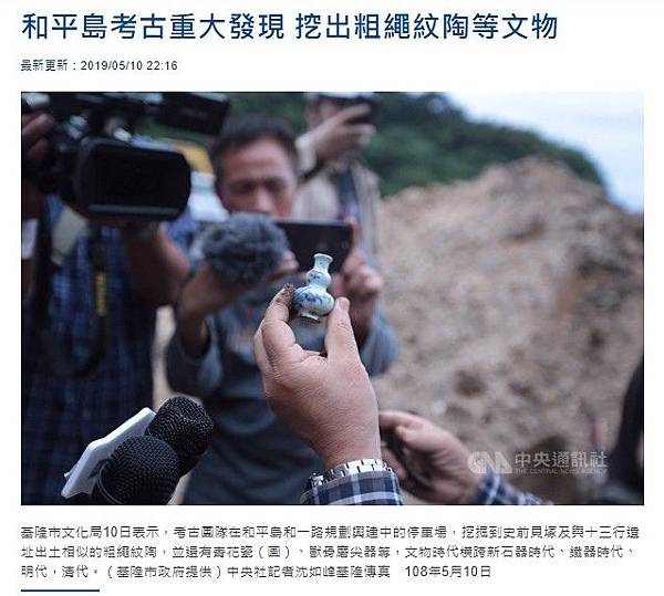臧振華指出,和平島雖是小島,但根據過去史料,島上在3000年以前就有人居住。今天發現的清朝年間青花瓷品質完整精細,軟陶片是典型石器時代的陶器,相關文物從新石器時代到日治時代都有,也代表在這片遺址中有不同的文化層。(編輯:張銘坤)1080510和平島考古重大發現 挖出粗繩紋陶等文物 | 文化 | 中央社 CNA http://bit.ly/2PXKdkZ