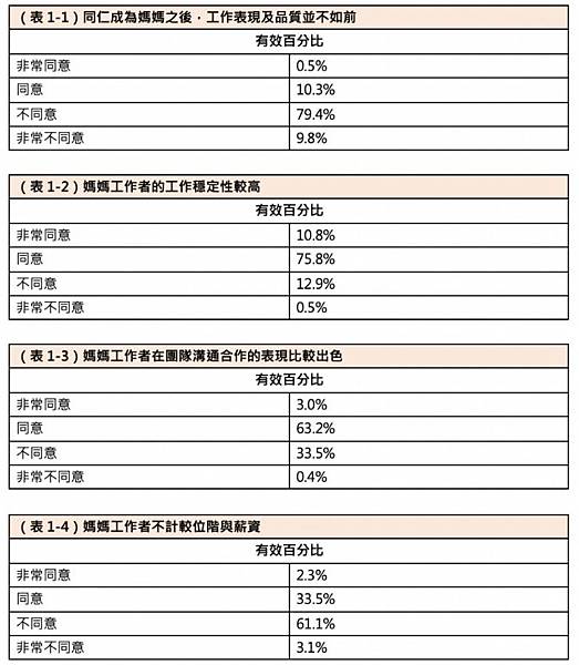 從企業的回應中也可看出,現代媽媽重視自己在職場的表現。64%的企業認為,媽媽工作者還是在意職場的位階與薪資(表1-4)。《親子天下》2千大企業人資長大調查:打造友善家庭職場,企業與媽媽都有說不出的苦 https://bit.ly/2L7JOuA