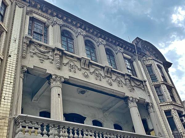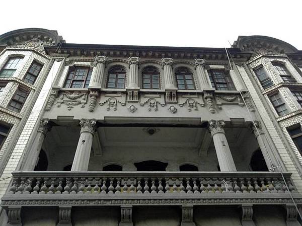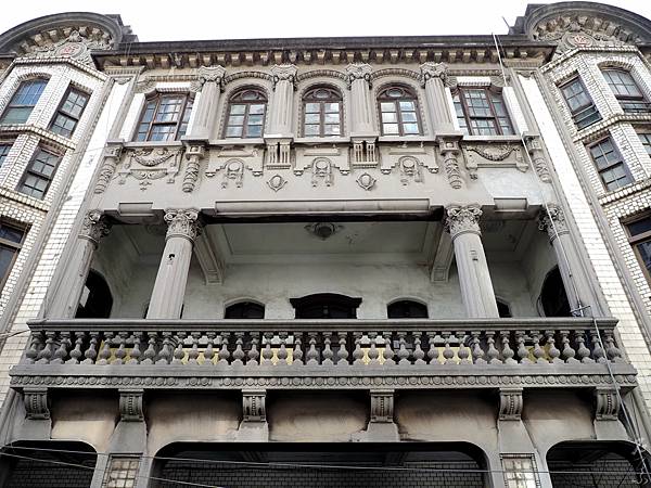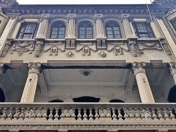 1920年開始興建、1923年竣工的「陳天來故居」,是一棟中西合璧、仿巴洛克風格的三層豪華洋樓,歐式古典立柱、弧狀裝飾山牆、圓形拱門…氣派華麗、精雕細琢,由當年大稻埕鉅富陳天來所建,堪稱當時第一豪宅。一樓是陳家的「錦記茶行」,二樓設有屋頂花園及茶商接待室,從這裡可以遠眺淡水河景致;三樓前廳是祭祀神明空間,後廂房則是家族起居空間。