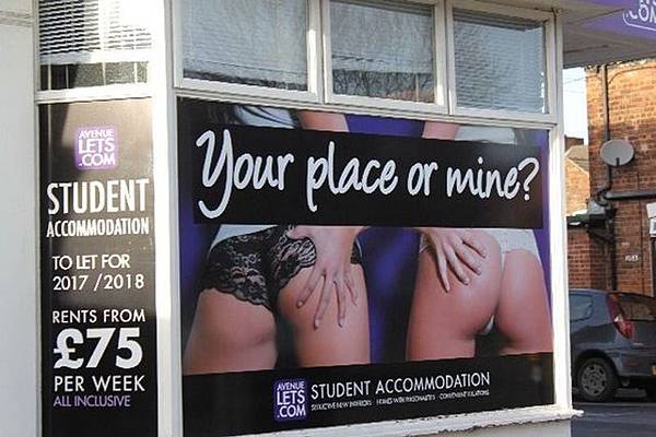 最近在英國的一則學生套房租屋廣告引起爭議,廣告大大地放上兩位正妹的屁股,挑逗性的廣告詞引起批判和反彈,廣告主表示,將考慮提前撤換。