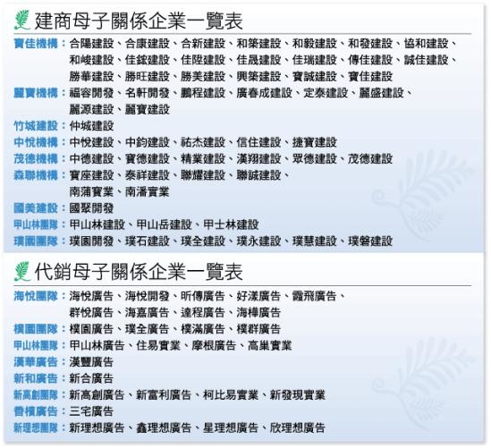 誠如這位全國不動產的房仲大哥所言,還真的不能因為門面不起眼而小看它。這棟寶佳機構總部所在的大樓,是住商混合型,一半是寶佳機構,一半是住戶,因此偶爾還可看見住戶從大樓中提著垃圾走出來倒。本刊調查,這棟大樓「藏」了五十幾家建設公司,公司名字不一樣,負責人也都不一樣,但登記住址都一樣,均隸屬於寶佳機構旗下的子公司。