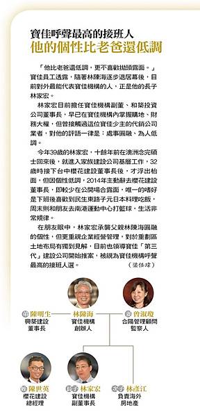 寶佳機構的上市公司僅櫻花建設,其他全不上市,除櫻花外,絕大部分寶佳子公司都是林陳海先挑上人才,注資投資後再運作。