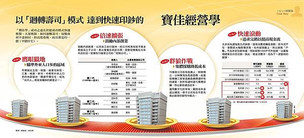 這位銀行高階主管,點出了林陳海的寶佳機構一個極為鮮明的經營特色:雖然身處在需要龐大資金投資的營建業,但林陳海卻能夠以短工期、高推案量、高完銷率、高周轉率的經營手法,硬是把原本必須囤壓大筆資金的營建業,變成宛如一只錢滾錢的超級聚寶盆。